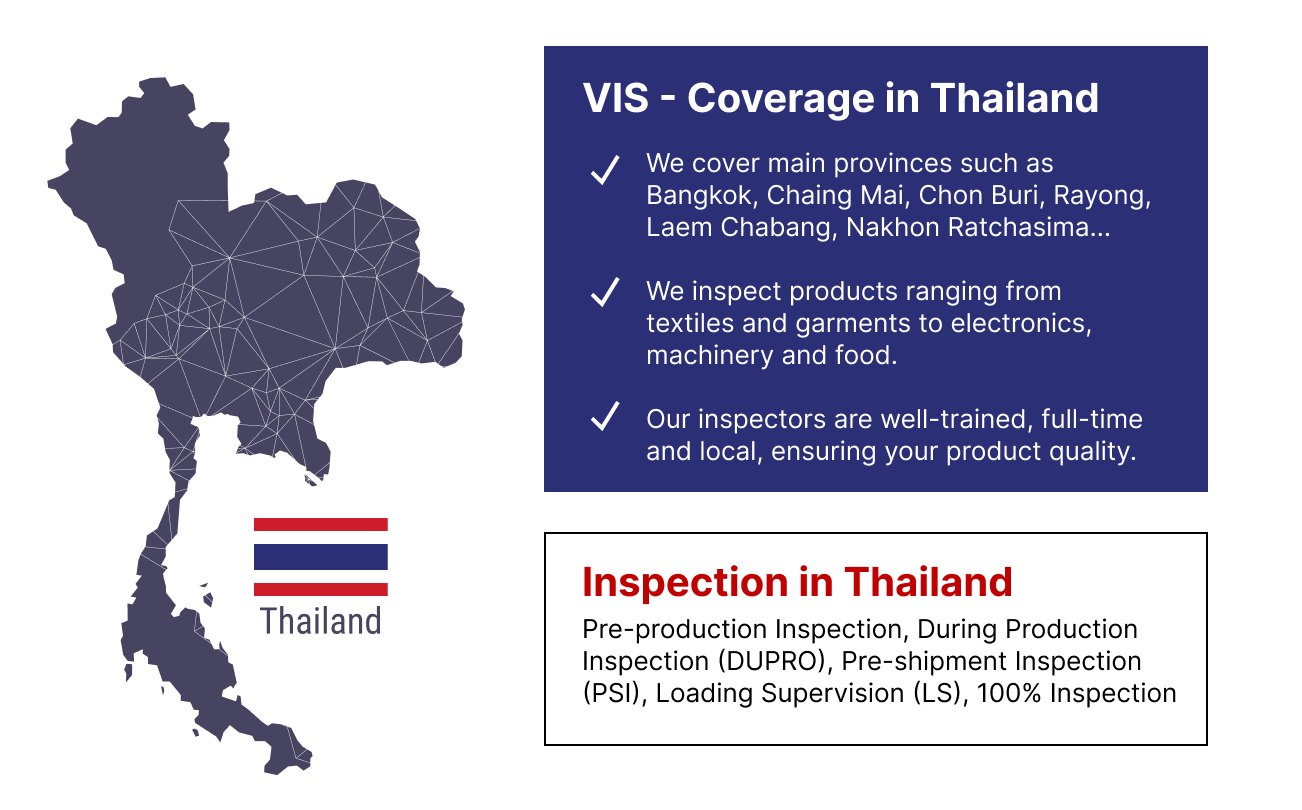 VIS offers comprehensive Inspection in Thailand, covering major regions and industrial hubs, including: